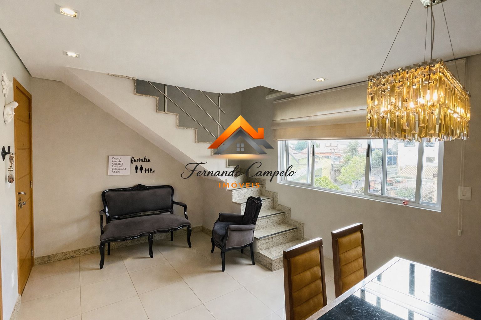 - Sala para dois ambientes, bem iluminada, com sol da manhã